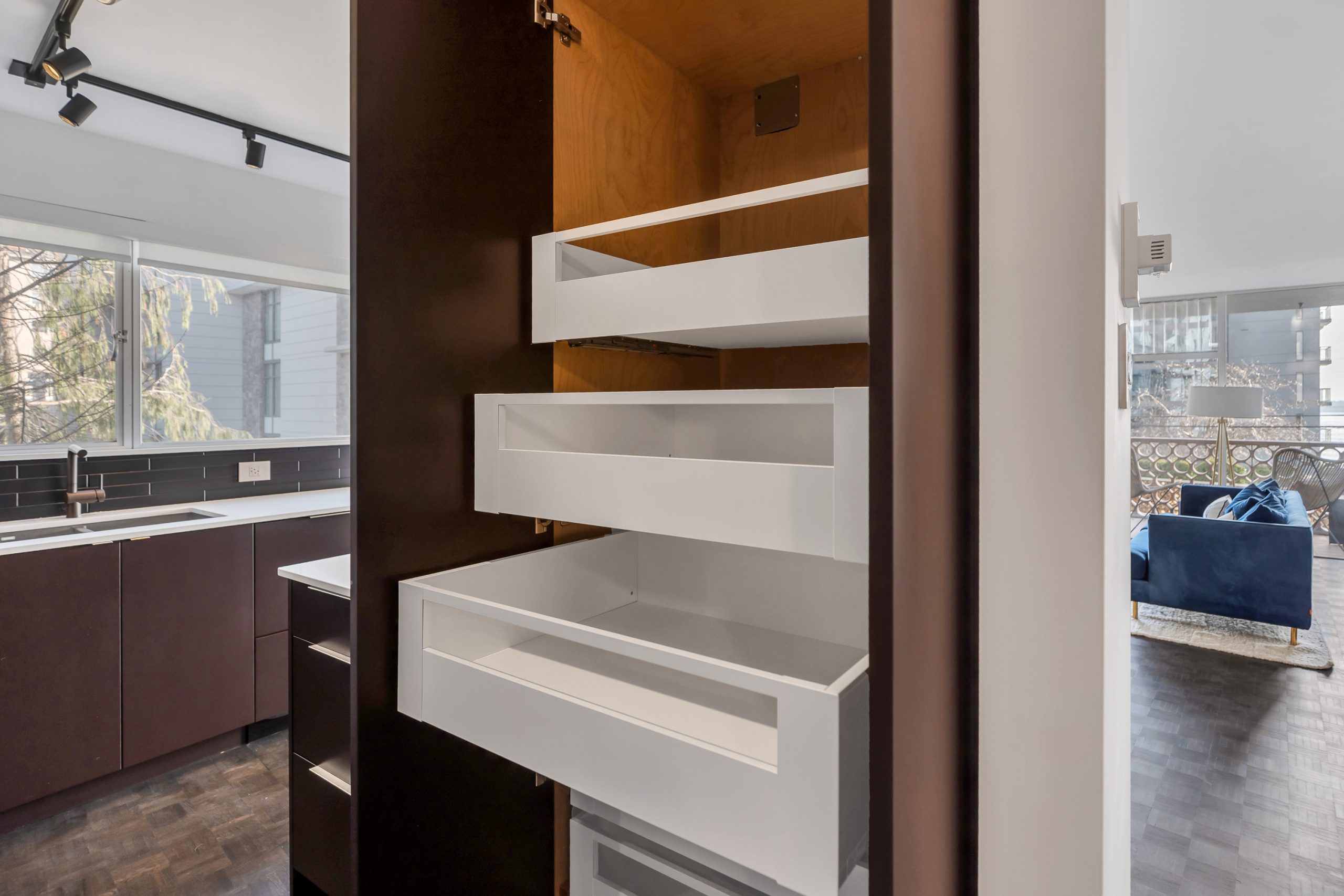 Time to take a second look at The Crescent! West Van’s most diligent strata has instituted a targeted plan making downsizing here as seamless as moving into a new building. The best thing? It’s available NOW! Seamless luxury experience upon arrival w/ state-of-the-art intercom, showroom redesign of the lobby & a safe/smooth new elevator. Extensive interior renovations include huge kitchen feat. custom millwork, a pantry & Bertazzoni appliances. Brand-names abound w/ Kohler & Blanco sinks, Riobel & Blanco faucets, Flos lighting & Emtek hardware! 2 fully renovated ensuite bedrooms! Bright non-ground level SE Corner w/only 1 shared wall, 3 sides of windows, intimate ocean views & a fantastic ocean breeze. Walk to the Library, Seawall & Rec Centre. 1 huge parking & locker! Just re-plumbed too!